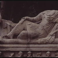 تابوت يظهر الموتى متكئين على أريكة في متحف تدمر