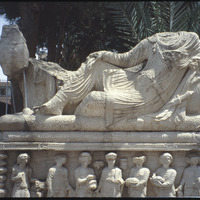تابوت يظهر الموتى متكئين على أريكة في متحف تدمر