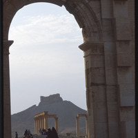 منظر للمعبد والأعمدة من خلال قوس النصر