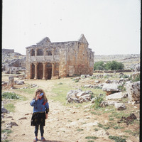 صورة لطفلة من أمام أنقاض منزل من طابقين في موقع سرجيلا الأثري