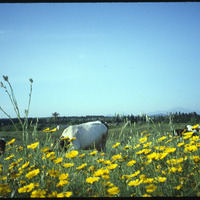 أبقار وزهور بحقل حول موقع أوغاريت الأثري