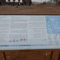 Jordan. Umm al Jimal, welcome sign with West Church in background