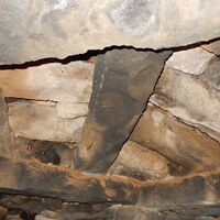 Jordan. Umm al Jimal, room in House XVII repaired as part of Ambassadors Fund for Cultural Preservation project, view of corbels in ceiling
