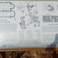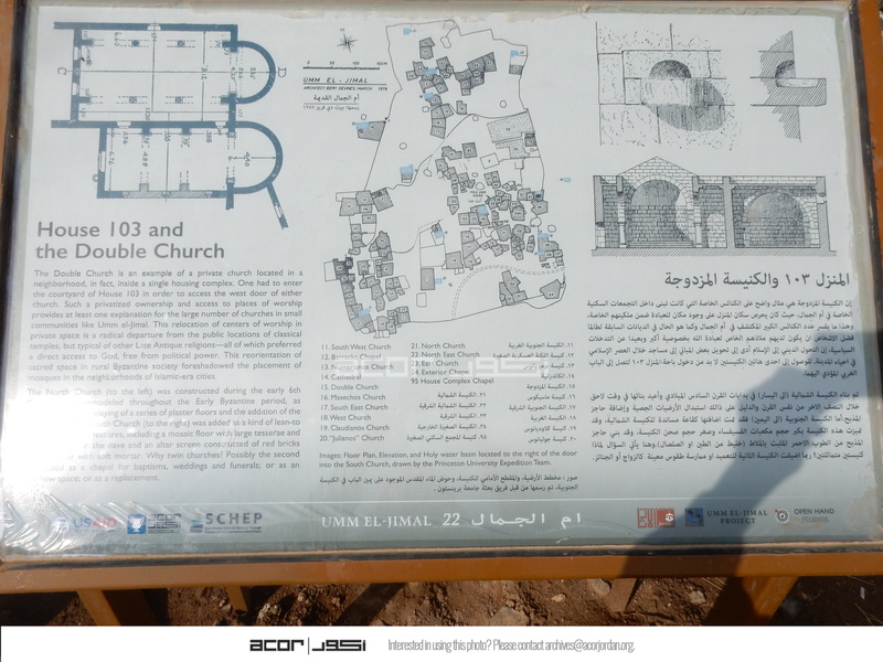 Jordan. Umm al Jimal, interpretive sign for House 103 and the Double Church