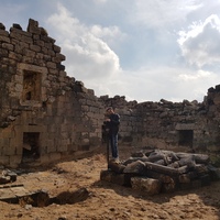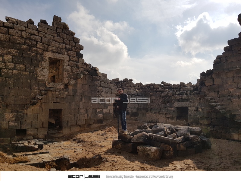 Jordan. Umm al Jimal, Abed AlFatah Ghareeb in courtyard of House XVIII