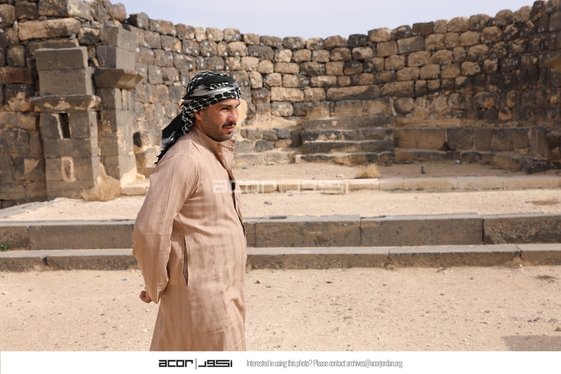 Jordan. Umm al Jimal, Ahmad Al Masaeed inside Cathedral