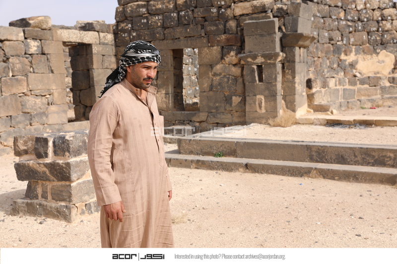 Jordan. Umm al Jimal, Ahmad Al Masaeed inside Cathedral