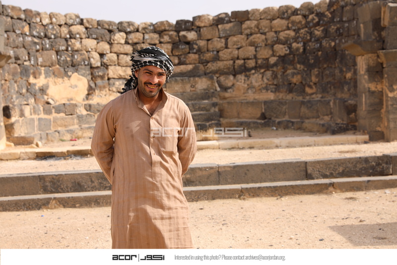Jordan. Umm al Jimal, Ahmad Al Masaeed inside Cathedral