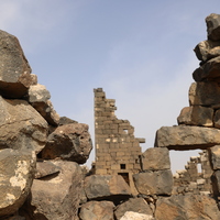 Jordan. Umm al Jimal, view of tower of House XVII from within House XVIII