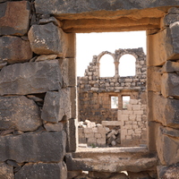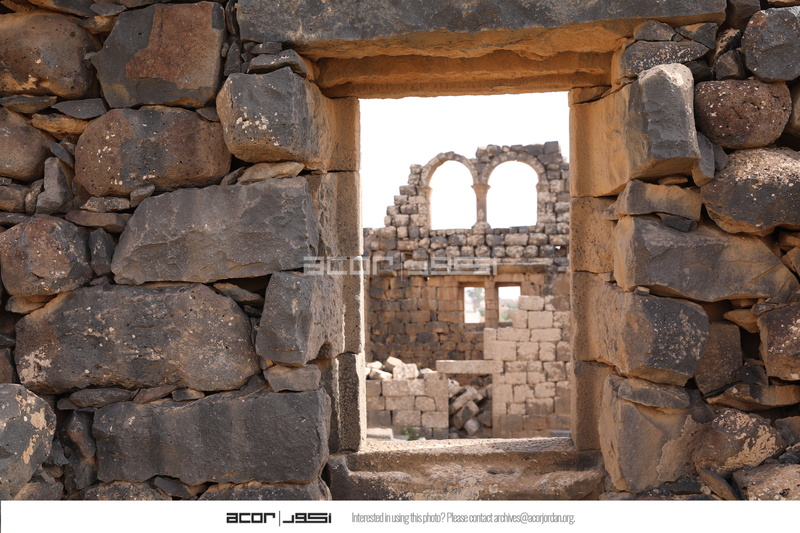 Jordan. Umm al Jimal, view of double window of House XVIII