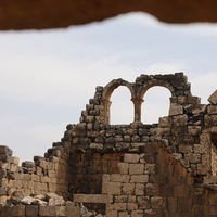 Jordan. Umm al Jimal, double window of House XVIII, seen from courtyard