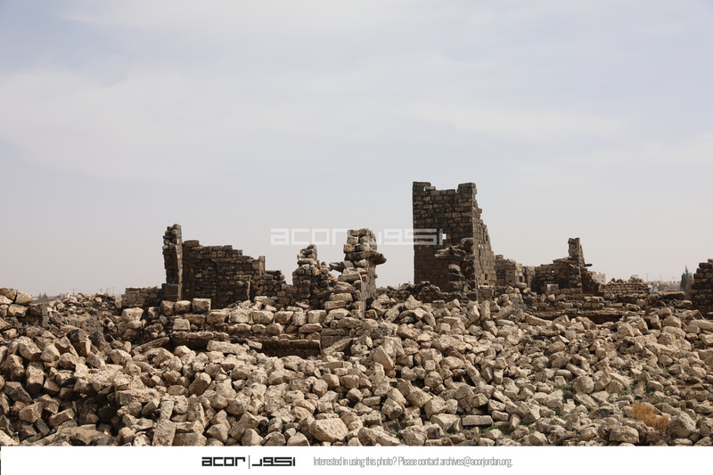 Jordan. Umm al Jimal, rubble with Houses XVII and XVIII in the background