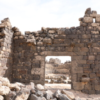 Jordan. Umm al Jimal, looking through entryway into south hall of Double Church