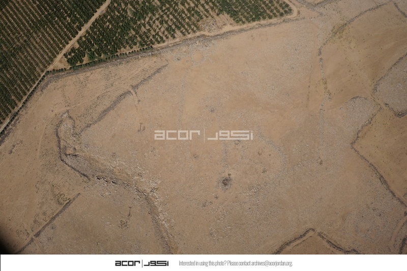 Jordan. Umm al Jimal, aerial view, modern farms, animal corrals, and stone piles, northeast of Umm al Jimal