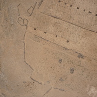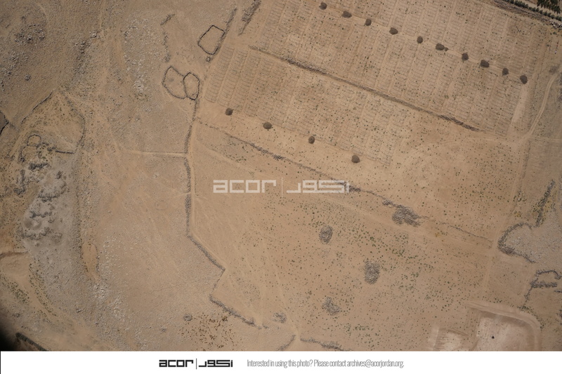 Jordan. Umm al Jimal, aerial view, modern farms, animal corrals, and stone piles, northeast of Umm al Jimal