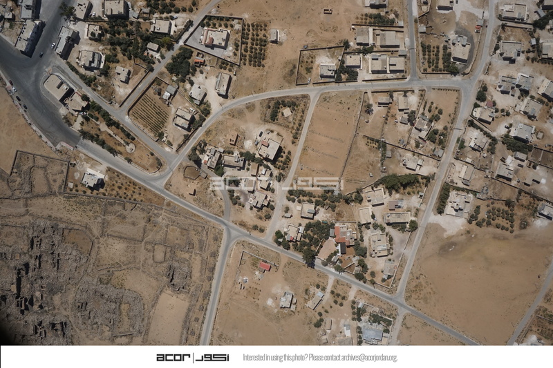 Jordan. Umm al Jimal, aerial view, modern town and northwest quadrant of archaeological site