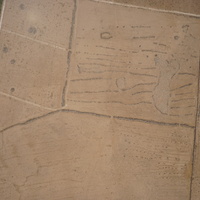 Jordan. Umm al Jimal, aerial view with ancient farmstead and animal corrals, occupation debris and gravel