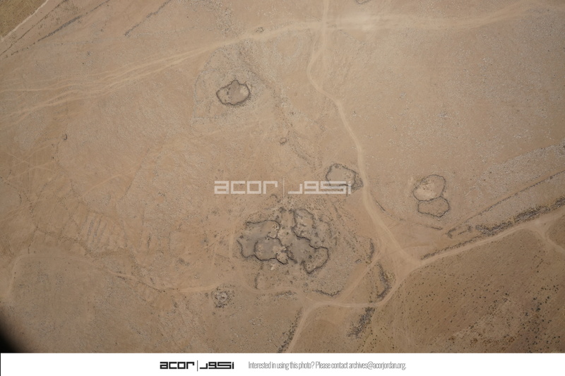 Jordan. Umm al Jimal, aerial view, ancient and modern farm fields and ancient animal corrals in countryside northeast of Umm al Jimal