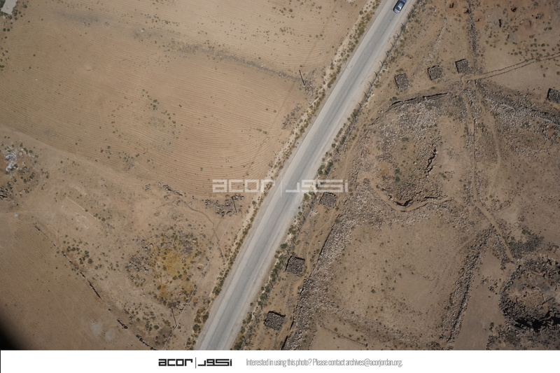 Jordan. Umm al Jimal, aerial view, Northwest Church in bottom left quadrant showing semicircular apse at the bottom