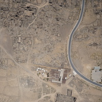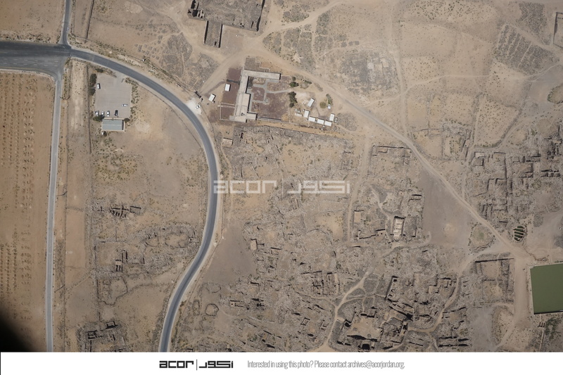 Jordan. Umm al Jimal, aerial view, Roman Reservoir at bottom