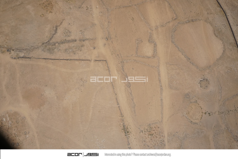 Jordan. Umm al Jimal, aerial view, pockmarks in photo indicate where looting has taken place, fields north of site