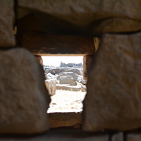 Jordan. Umm al Jimal, view from inside Praetorium