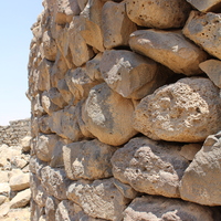 Jordan. Umm al Jimal, curved garden wall on the exterior of House IV