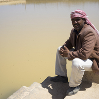 Jordan. Umm al Jimal, Foreman Ali Al Masaeed at the Roman Reservoir