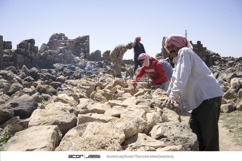 Jordan. Umm al Jimal, local workers clearing interpretive trail