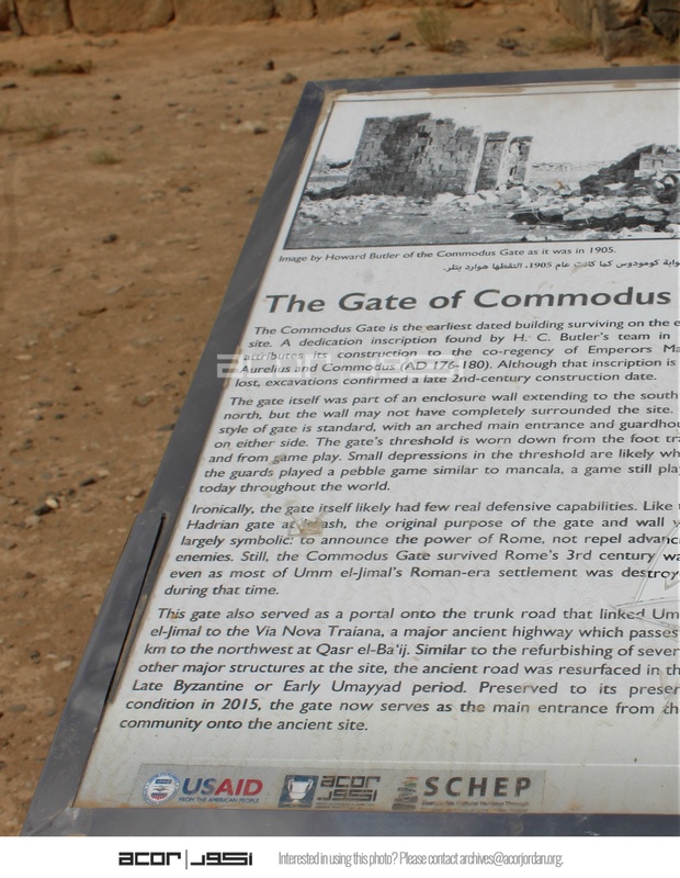 Jordan. Umm al Jimal, interpretive sign for Commodus Gate