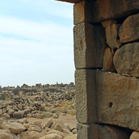 Jordan. Umm al Jimal, doorway of great room of House XIII