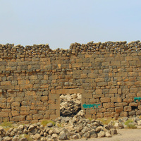 Jordan. Umm al Jimal, general view of site, wall shows corbelling and lintel