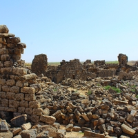 Jordan. Umm al Jimal, view from house XVIII, looking east at houses 94 and 95