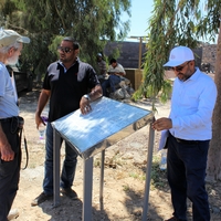 Jordan. Umm al Jimal, site steward Muaffaq al-Masaeed with Jehad Haron and Bert de Vries inspecting new signs