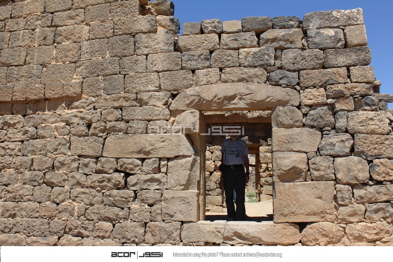 Jordan. Umm al Jimal, Bert de Vries in entryway, stone door to House XVIII