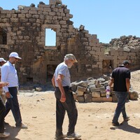 Jordan. Umm al Jimal, in the courtyard of House XVIII, pictured: Bert de Vries of UJAP, Nizar Al Adarbeh of USAID SCHEP