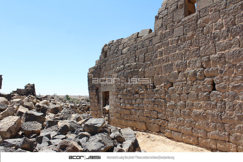 Jordan. Umm al Jimal, north wall, bulging masonry in wall of House XVII