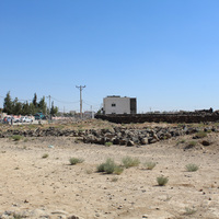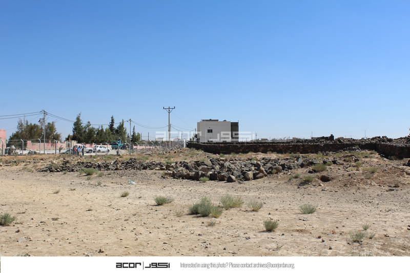 Jordan. Umm al Jimal, looking north from Commodus Gate to West Entry Park, community playground, and Department of Antiquities office