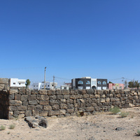 Jordan. Umm al Jimal, Commodus Gate, on the left is the part of north guard room, lower wall is the Department of Antiquity's rebuild of the west perimeter wall ca. 2010