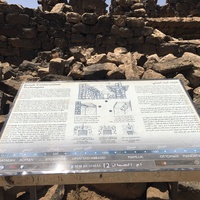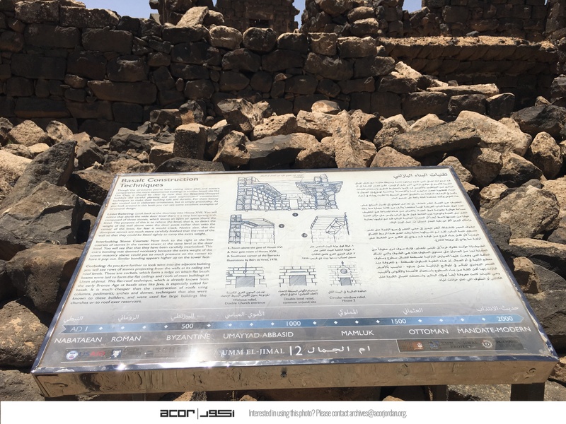 Jordan. Umm al Jimal, interpretive sign for basalt construction techniques