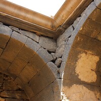 Jordan. Umm al Jimal, cruciform room in the Praetorium looking up at the ceiling moldings
