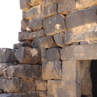 Jordan. Umm al Jimal, the West Church, detail of wall, lintel over doorway with cross