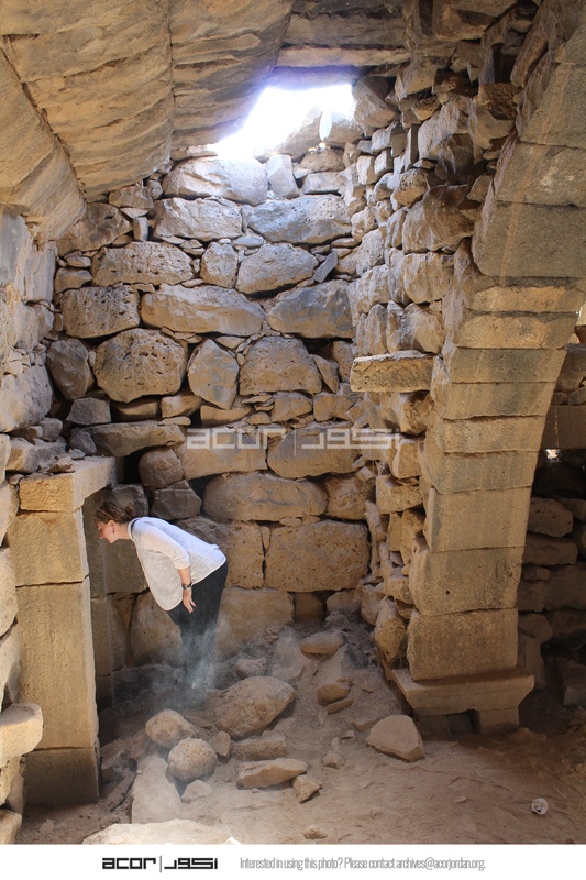 Jordan. Umm al Jimal, great room of House XIII, bathroom in corner
