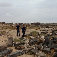 Jordan. Umm al Jimal, general view of site with ACOR director Barbara Porter and Bert de Vries of UJAP