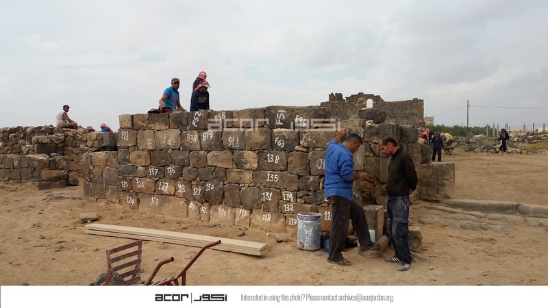 Jordan. Umm al Jimal, local workers working on the restoration of Commodus Gate