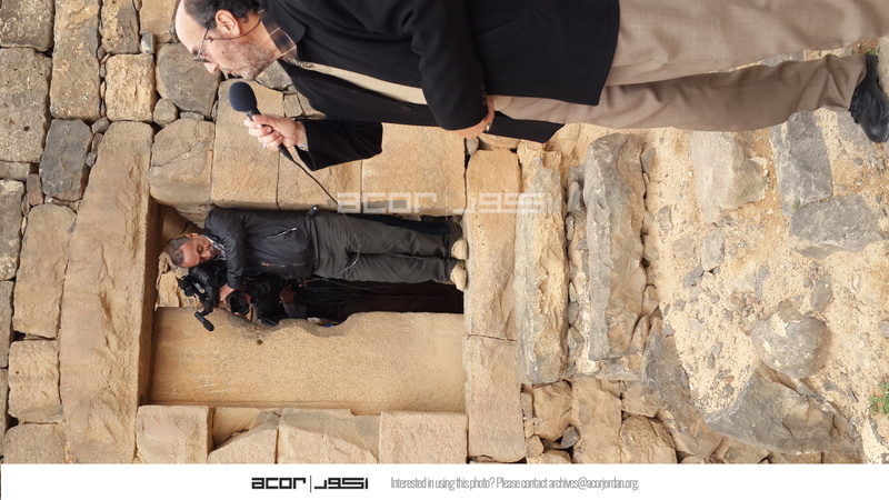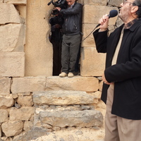 Jordan. Umm al Jimal, Abdul Qader Al-Housan from the Department of Antiquities leading a tour with news media