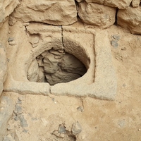 Jordan. Umm al Jimal, room in House XVIII showing the circular opening to the basement water reservoir