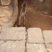 Jordan. Umm al Jimal, a trench showing the Umayyad floor in the courtyard of House XVIII and the water drain designed to drain the courtyard water from the building