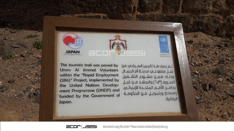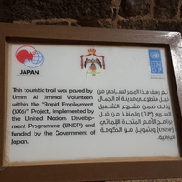 Jordan. Umm al Jimal, sign celebrating several days of trail cleaning carried out by UNDP and funded by the government of Japan