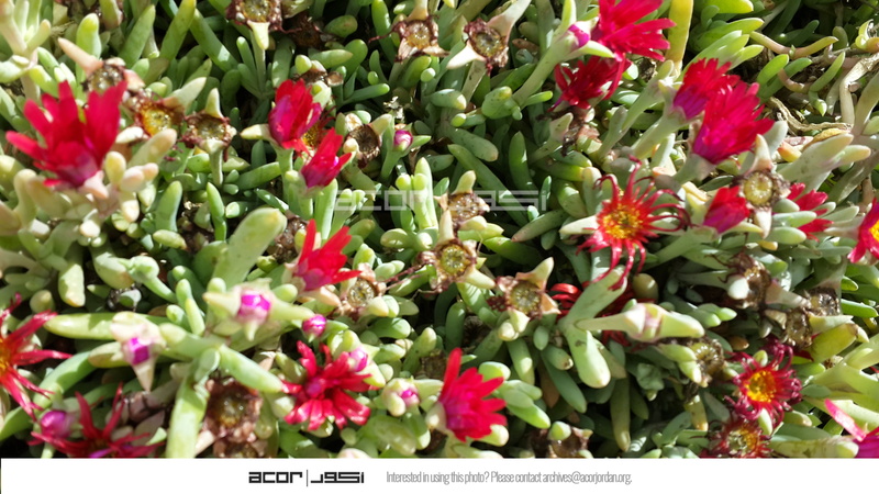 Jordan. Umm al Jimal, flowers located in what is now the inscription garden, planted by guards who previously lived at the site